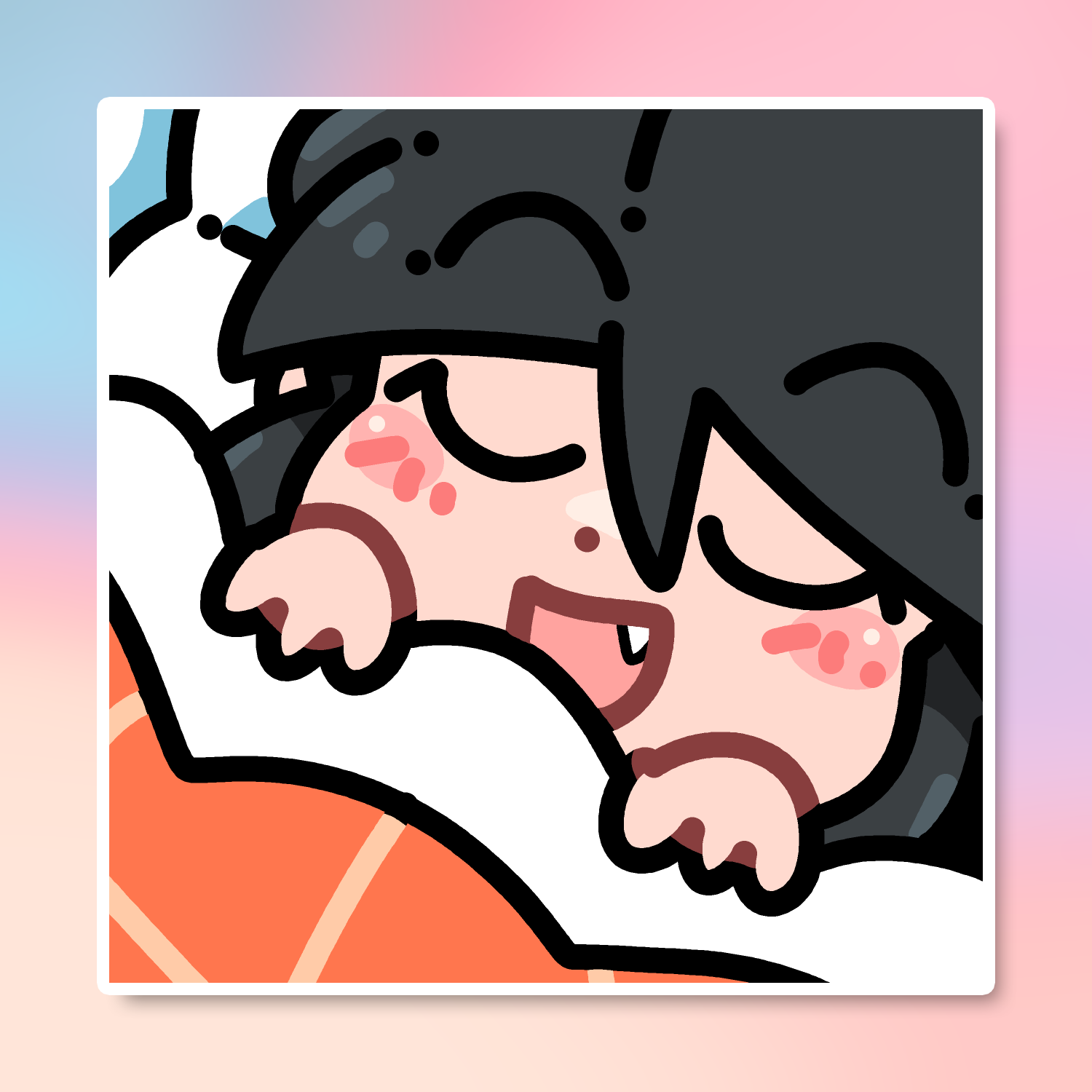 All of our stickers are die-cut and made-to-order. This sticker is available in three different sizes, 2 inches, 4 inches, and 6 inches, and the 4 and 6 inch versions are available in three variants: standard, holographic, and laminate.
