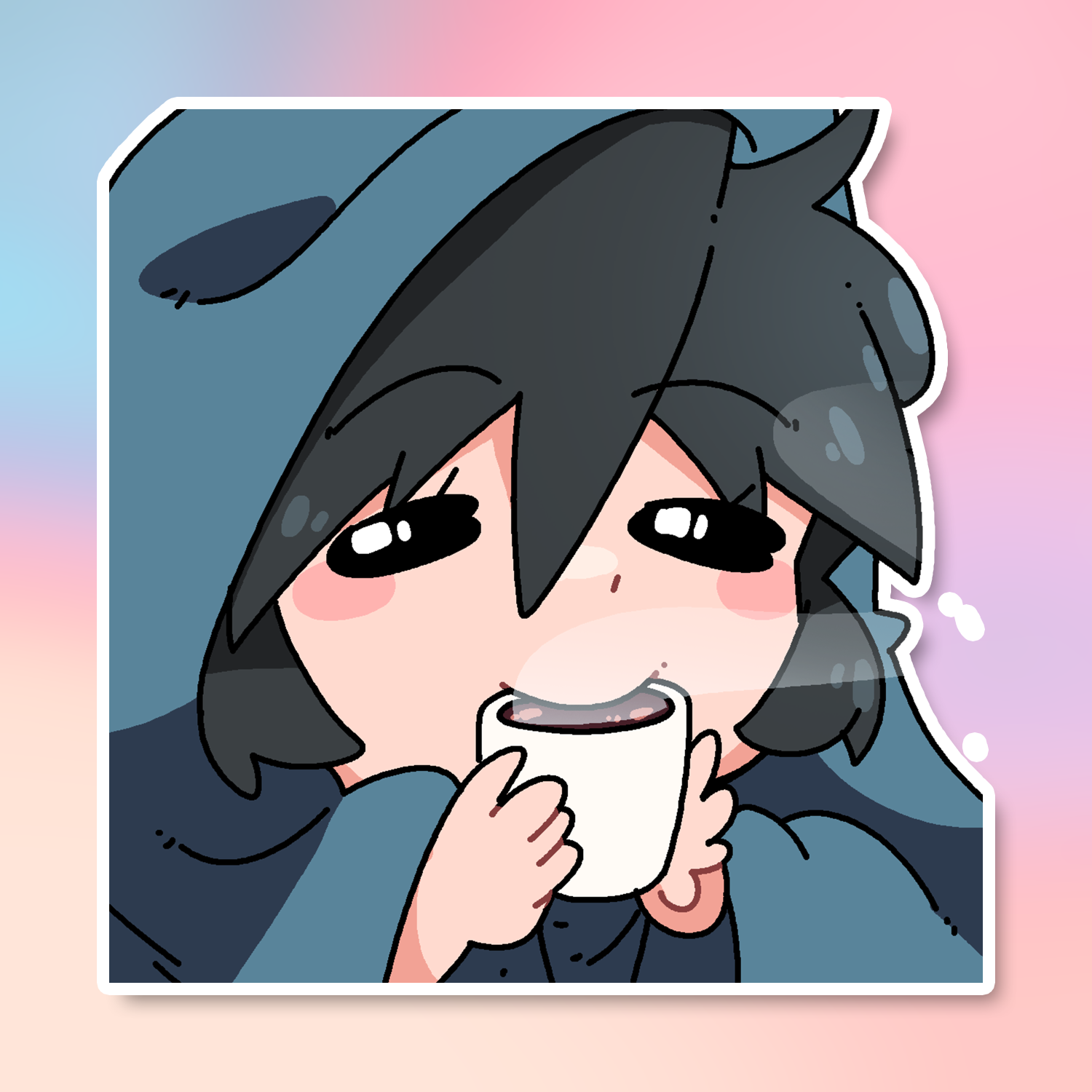 All of our stickers are die-cut and made-to-order. This sticker is available in three different sizes, 2 inches, 4 inches, and 6 inches, and the 4 and 6 inch versions are available in three variants: standard, holographic, and laminate.