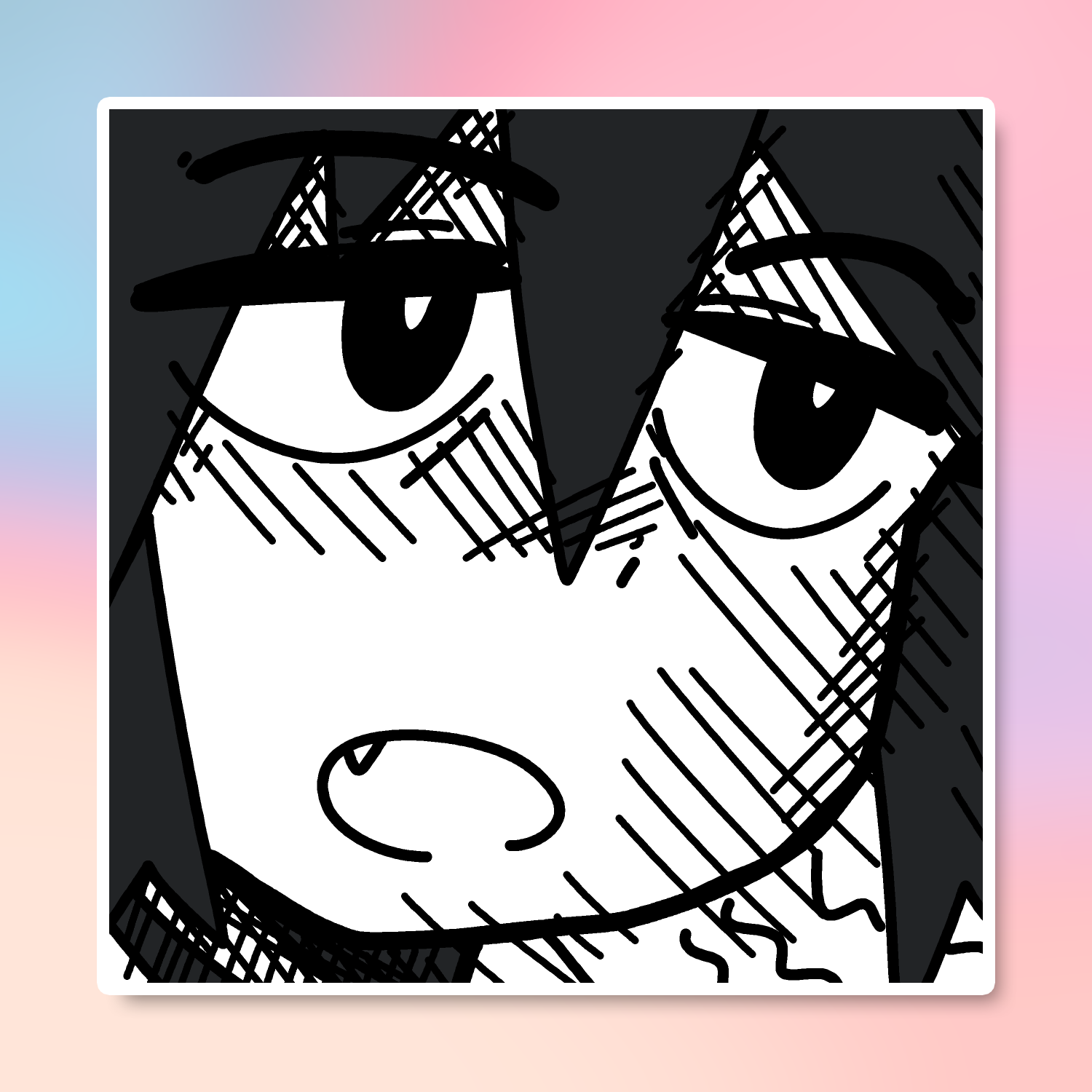 All of our stickers are die-cut and made-to-order. This sticker is available in three different sizes, 2 inches, 4 inches, and 6 inches, and the 4 and 6 inch versions are available in three variants: standard, holographic, and laminate.