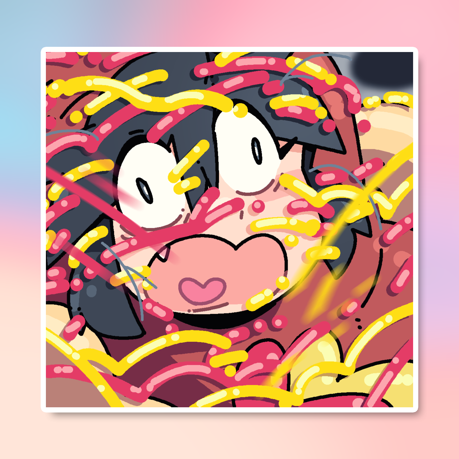 All of our stickers are die-cut and made-to-order. This sticker is available in two different sizes, 4 inches and 6 inches, and are available in three variants: standard, holographic, and laminate.