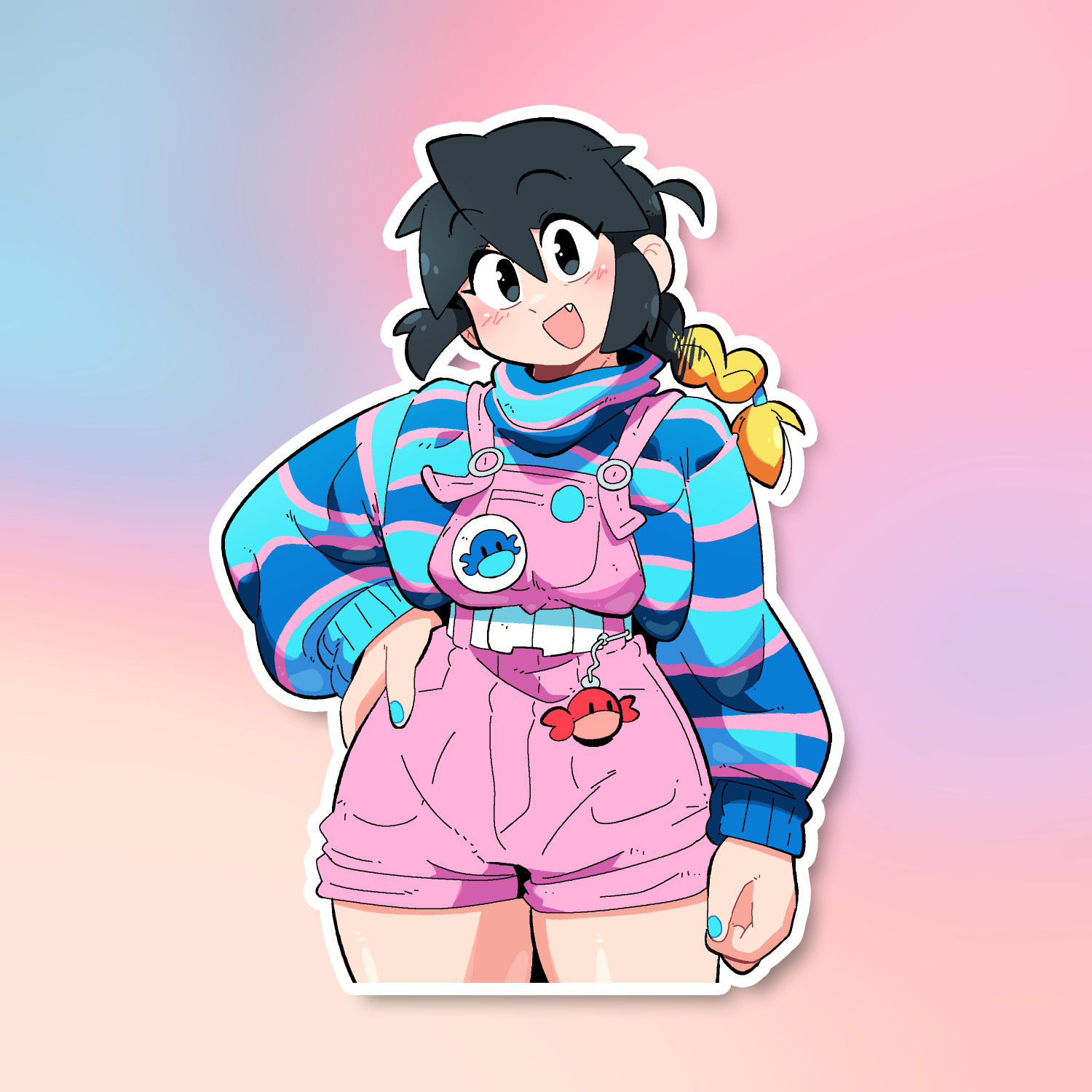 All of our stickers are die-cut and made-to-order. They are available in two different sizes, 4 inches and 6 inches, and are available in three variants: standard, holographic, and laminate.