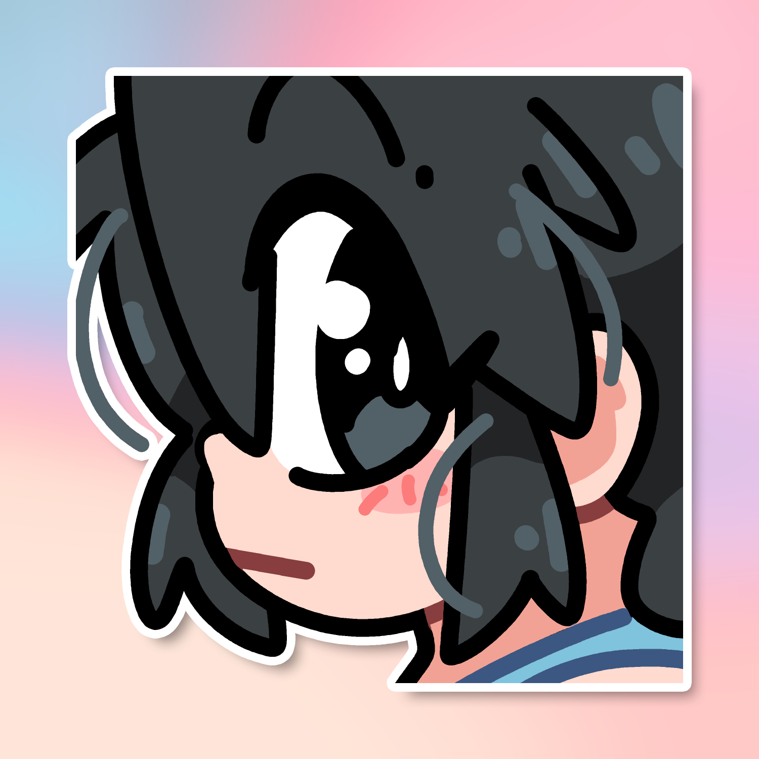 All of our stickers are die-cut and made-to-order. This sticker is available in three different sizes, 2 inches, 4 inches, and 6 inches, and the 4 and 6 inch versions are available in three variants: standard, holographic, and laminate.