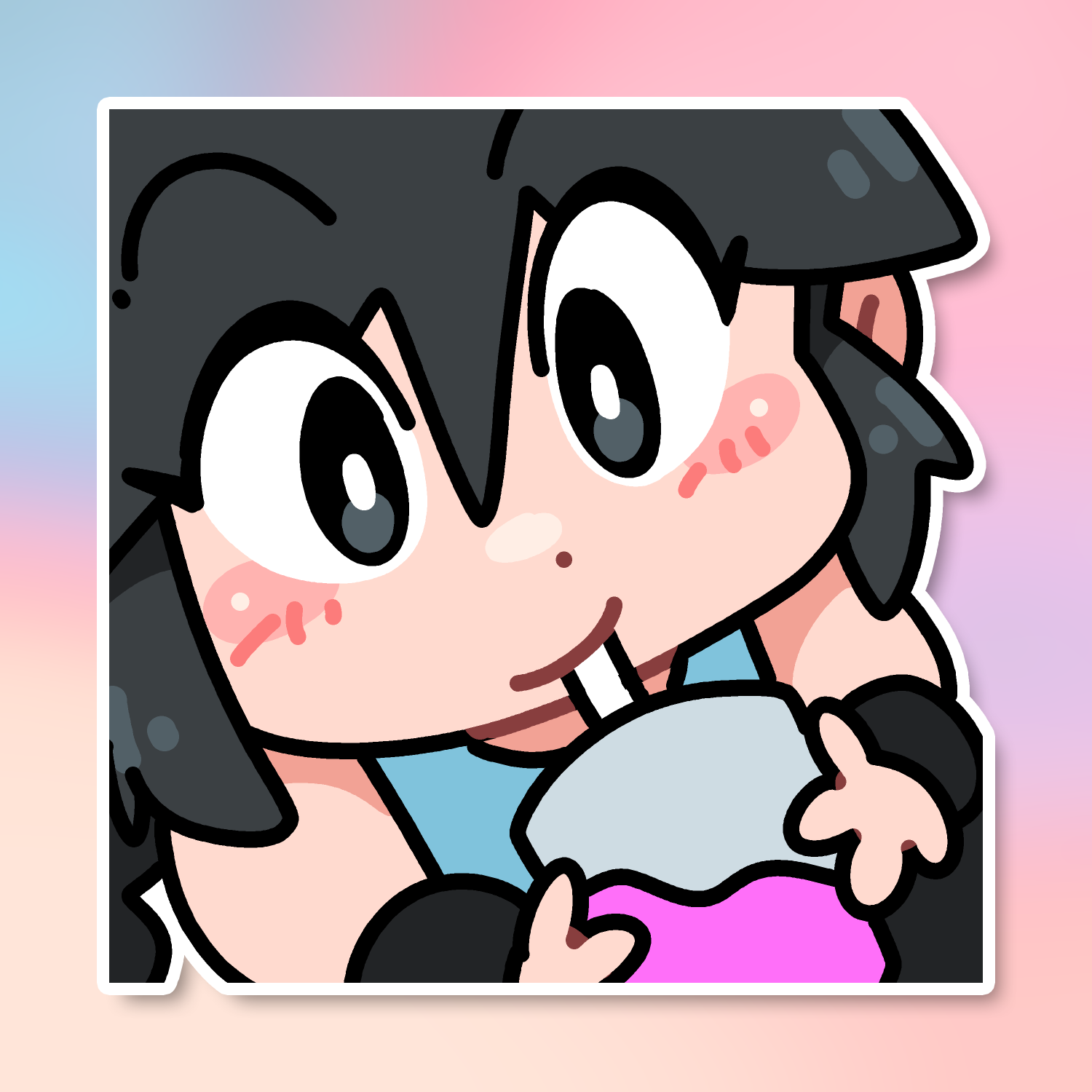 All of our stickers are die-cut and made-to-order. This sticker is available in three different sizes, 2 inches, 4 inches, and 6 inches, and the 4 and 6 inch versions are available in three variants: standard, holographic, and laminate.